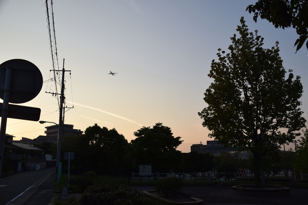 Der Flughafen von Fukuoka ist nicht weit. Entsprechend fliegen immer mal wieder Flugzeuge über das Viertel. Viel hören tut man davon allerdings nicht, was vermutlich an all den Ventilatoren und Klimaanlagen liegt, die hier so zum Einsatz kommen. Im Hintergrund rechts eine weitere Schule, davor der Chikushigaoka Central Park. Klingt nach großem Aufriss, ist aber eher etwas beschaulich. Erstaunlicherweise gab es in dem Park aber einiges an Grünfläche. Die ist zwar teilweise arg angegriffen, sonst aber erstaunlich grün. Ich kann mir nicht vorstellen, dass die Grünflächen hier regelmäßig gegossen werden. Ob die Pflanzen hier auch das japanische Unbesiegbarkeitsgen haben? Oder reicht den Pflanzen eventuell gar die Luftfeuchtigkeit, um genug Wasser aufzunehmen? Dann würde sich ja zumindest einer über die Feuchtigkeit freuen.