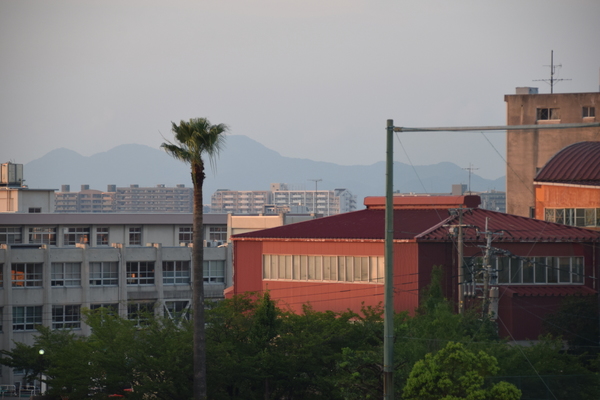 Den FC Bayern München bekommst Du mit so einer Flutlichtanlage sicher nicht ins Stadion. Aber vielleicht schauen Poldi und Iniesta mit dem FC Kobe ja mal vorbei. Ich kann mich daran erinnern, solche Flutlichtmasten schon in dem einen oder anderen Anime gesehen zu haben. Und im Hintergrund lässt sich gut erkennen, dass Fukuoka durchaus hügelig ist, obwohl es direkt am Meer liegt. Der höchste Berg im Umkreis ist der Sefuri-san mit knapp über 1000 Metern Höhe. Und der ist nur etwa 16 Kilometer vom Stadtzentrum entfernt. Da werden die Holländer neidisch. So ein toller Berg, das ist ja noch viel besser als in Winterberg.