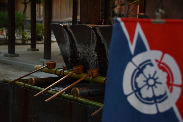 Der Kushida Schrein ist jetzt nichts wirklich Besonderes. Aber er war halt eben um die Ecke. Ein kleiner Shinto-Schrein, in dem man Amaterasu, Göttin der Sonne und des Universums, und Susanoo, Gott des Meeres und des Sturmes, anbeten kann. Ein wirkliches Anliegen an die beiden Götter hatten wir nicht. Aber immerhin haben wir uns ordnungsgemäß gereinigt. Zum Glück gab es dafür eine Anleitung. Man nehme die Bambuskelle in die rechte Hand und reinige damit die linke. Dann die Kelle in die linke Hand und die rechte reinigen. Dann wieder ein Handwechsel, mit der Kelle Wasser in die linke Hand und davon etwas trinken (Ich hatte aber auch einen Durst!). Im Anschluss nochmal die linke Hand gereinigt und die Kelle zurückgelegt. Fertig!