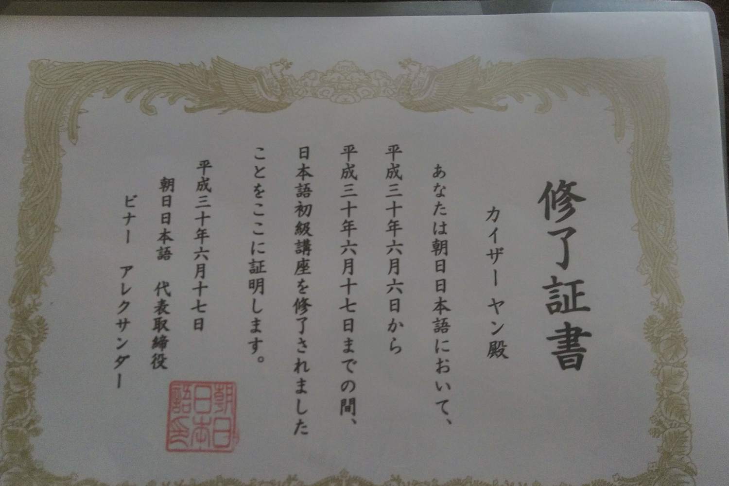 Und wer weiß, vielleicht gehe ich dann auch wieder zur Sprachschule. Das hat nämlich wirklich durchgängig eine Menge Spaß gemacht und mich in meinen überschaubaren Japanisch-Kenntnissen deutlich nach vorne gebracht. Das Bild zeigt übrigens mein Zertifikat. Ich bin gestern ein wenig geprüft worden und musste eine kleine Rede von mindestens einer Minute Länge halten. Anfangs dachte ich, dass ich ja kaum genug Wörter kenne, um damit eine Minute zu füllen. Aber dann ist es doch ganz okay geworden. Und ich habe diverse Wörter und grammatikalische Konstrukte eingebaut, die ich in den letzten zwei Wochen gelernt habe. Das hat natürlich meine Lehrerinnen sehr gefreut.