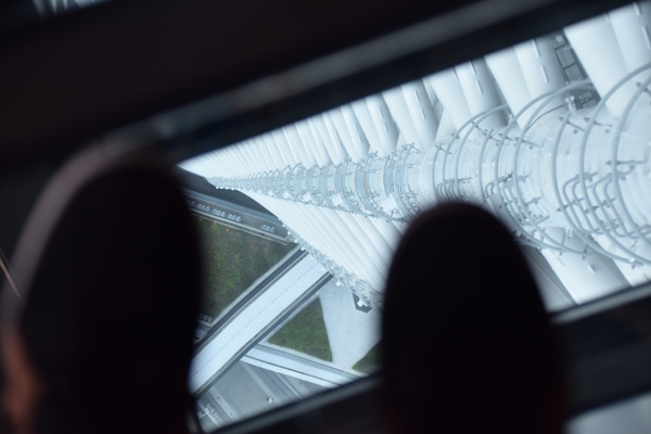 Nochmal 100 Meter höher auf der 2. Plattform. Unten links sieht man den Schatten des Turms.
