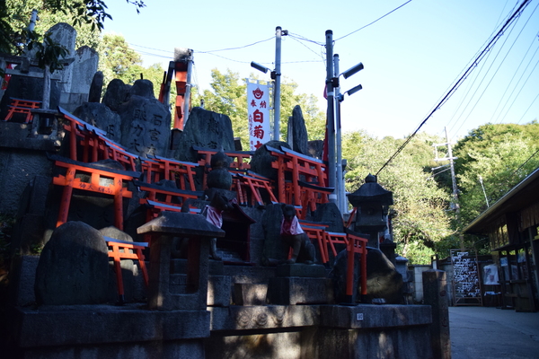 Die Tore säumen ein paar Pfade, die erst einen Bambuswald durchqueren und dann relativ schnell einen Berg hinauf führen. Einige Strecken sind durchaus ziemlich steil gewesen. Und auch wenn man meist von der direkten Sonne geschützt war, hat der urwaldartige Wald mit seiner Feuchtigkeit ordentlich geschlaucht. Unterwegs gab es immer wieder spannende Schreine und Kioske. Zwischendrin sind wir auch einfach mal an einem kleinen See von den Toren abgebogen und in den Wald gewandert. Selbst Zauntore mit der Aufschrift "Geschlossen halten, Wildschweine!" konnten unseren Forscherdrang nicht bremsen. Am Ende sind wir wieder bei roten Toren gelandet und haben unseren Aufstieg fortgesetzt.