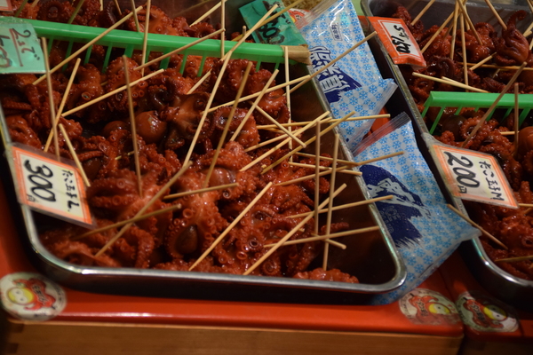 Begonnen haben wir den Tag mit einem Rundgang über die Fressmeile in der Nähe unseres Hotels. Da gab es wirklich alles. Und noch ein bisschen mehr. Weil wir ja verrückt sind und weder Schmerz noch Tod fürchten, haben wir einen süßen Oktopus zum Frühstück gegessen. War etwas zäh, aber lecker. Und der Kopf war mit Kartoffelbrei gefüllt. Mjamm!