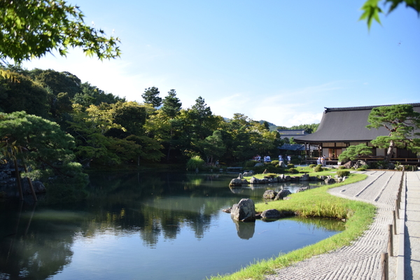 Danach ging es auf die andere Seite der Stadt, den Westen Kyotos erkunden. Dort wartete auf uns die Togetsukyo-Brücke, der Bambuswald von Arashiyama, der Tenryu-Tempel, sowie ein netter Moosgarten. Die Brücke war etwas langweilig und in der Mittagshitze mit prallem Sonnenschein eher etwas unangenehm. Dafür waren der Bambuswald und der Tempel sehr schön. Im Tempel gab es eine berühmte Deckenmalerei eines Drachen, der Beobachter an jeder Stelle des Innenraums anguckt. Leider war Fotografieren verboten wegen zu heilig. Der Moosgarten hatte leider nach dem brutalen Sommer nicht mehr allzu viel schönes Moos, konnte aber dennoch überzeugen. Alles in allem eine Menge kleinerer Sehenswürdigkeiten bei wieder einmal viel zu heißem Wetter. Gelohnt hat es sich dennoch.