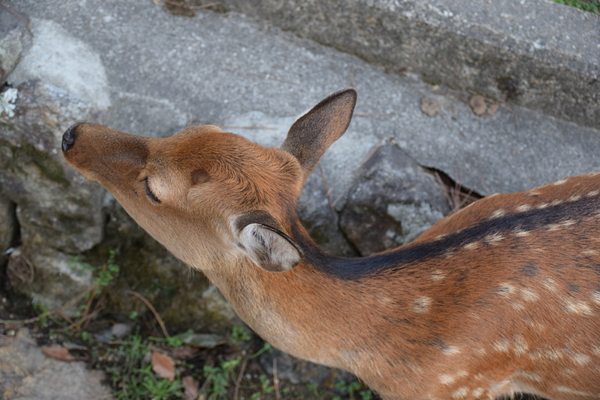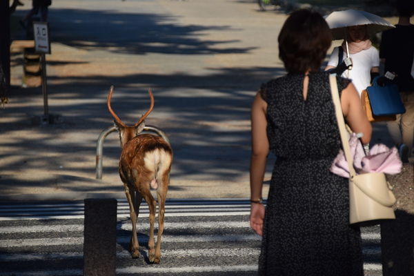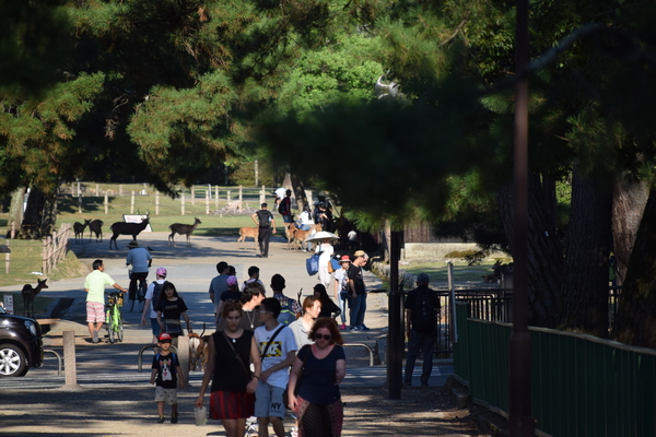 Die Autos fahren in Parknähe noch rücksichtsvoller, als sie das in Japan eh schon tun. Als wir eine rote Fußgängerampel erreichten, stand dort mit den wartenden Menschen auch ein Reh und wartete ebenfalls. Irgendwann wurde es dem Reh aber zu langweilig und es ist frech bei Rot über die Straße. Die Menschen warten weiter, die Autos halten an und alles ist entspannt.