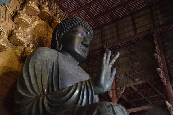 Vor der großen Halle sitzt eine sehr berühmte Statue des Binzuru. Nach buddhistischem Glauben kann man an diesen Statuen einen Körperteil streicheln und erfährt dann selbst Wohlbefinden und Gesundheit an ebendieser Stelle. Die schalen Witze könnt Ihr Euch heute mal selbst ausdenken.