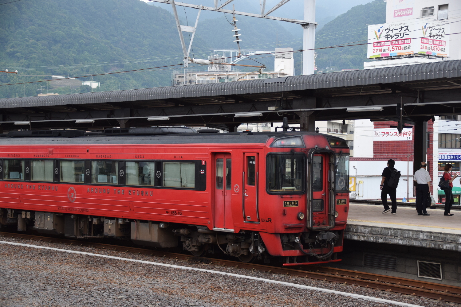 Nach Beppu führt keine Shinkansen-Linie, sondern nur Regionalzüge. Die brauchen zwar deutlich länger, sind aber netterweise mit unserem superpraktischen Japan Rail Pass ebenfalls kostenlos nutzbar. Und so zuckelte unser Zug gemütlich an Dörfern, haufenweise Reisfeldern und dem ein oder anderen Berg vorbei gen Beppu.