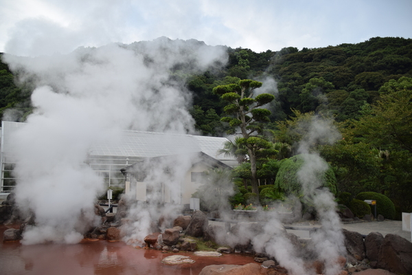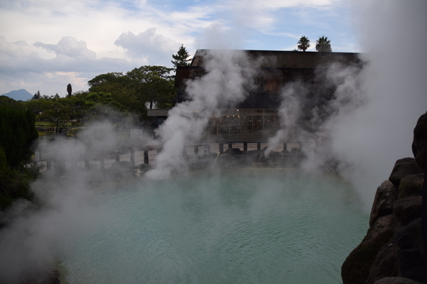 Leider waren wir zeitlich mal wieder arg spät dran und konnten deswegen von den ganzen Onsens (Onsen ist ein traditionelles Bad in einer heißen Quelle, oder hatten wir das Thema hier schon? Die Onsens in Beppu sind deswegen so super, weil das Wasser hier nicht erhitzt werden muss, sondern aus natürlichen, heißen Quellen kommt) und heißen Höllenquellen nur noch eine einzige Quelle besichtigen. Die war aber wirklich spannend: Umi Jigoku - Die Meereshölle