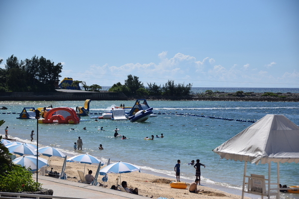 Nach der Landung in der im Süden der Hauptinsel gelegenen Hauptstadt Naha (etwas über 300.000 Einwohner, also etwa Bielefeld...) ging's für uns noch mit einem Hotel-Shuttlebus etwa 60 Kilometer die Küste hoch. Unser Hotel war eine etwas in die Jahre gekommene Bettenburg voller lärmender Chinesen und ihrer nur mäßig erzogenen Brut. Aber trotz der stetigen Lärmbelästigung vom asiatischen Festland konnte man es dort wirklich gut aushalten. Nach dem Einchecken ging zwar die Sonne bereits unter, wir konnten aber dennoch einen schnellen Wassertest vornehmen. Das Wasser hatte tatsächlich eine Temperatur um die 27 Grad. Das fühlt sich so ein bisschen an wie Badewanne, ist aber bei Außentemperaturen von 32 Grad und prallster Sonne wirklich noch erfrischend.