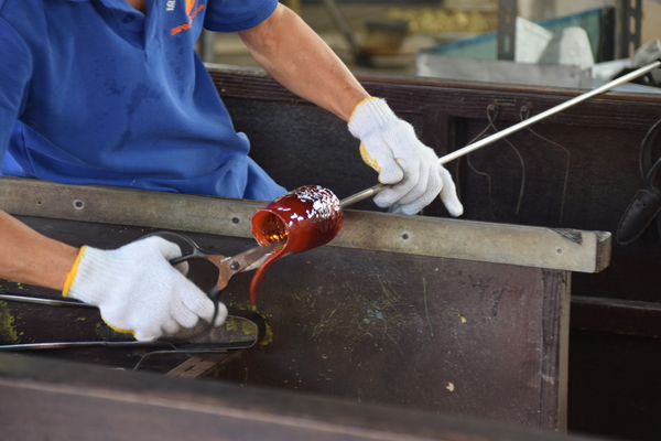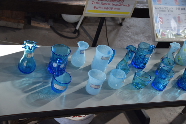 Auf dem Weg vom Höhlenausgang zur Schlangenvorführung hatten wir kurz Zeit, die Ryukyu-Häuschen zu sehen. Da wir aber wirklich wenig Zeit bis zur letzten Vorstellung hatten, konnten wir nur etwas beim Glasblasen zuschauen.