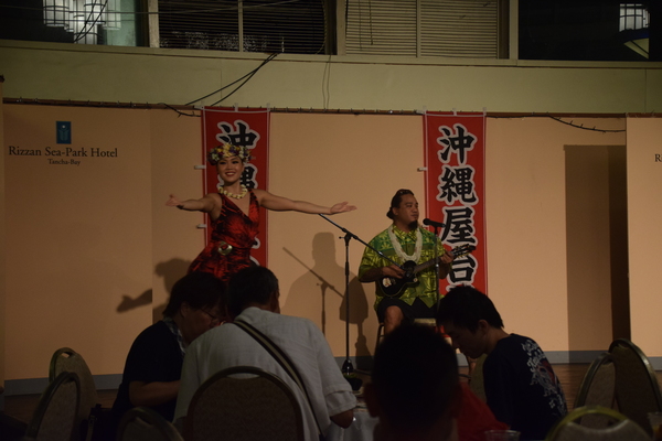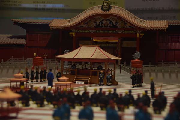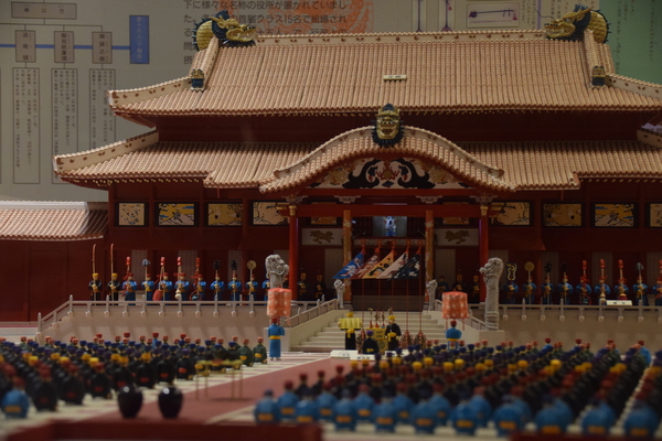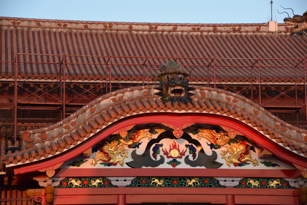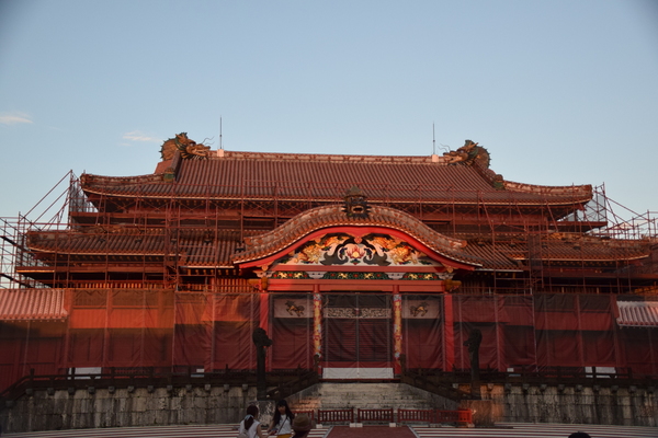 Während die Sonne langsam unterzugehen drohte, ging es schnell nach der Show zur Burg Shuri. Die Burg war über Jahrhunderte der Sitz der Könige der Ryukyus. Hier wurden die Gesandtschaften aus Japan und China empfangen und auch Anliegen der Bürger könnten hier dem König vorgetragen werden. Im Gegensatz zu den meisten anderen Burgen Japans ist die Burg Shuri angenehm bunt und hübsch. Und auch ihr Innenleben erinnert nicht an eine Karstadt-Filiale, sondern bringt viel Flair mit. Und auch im Dunkeln ist die Burg toll anzuschauen, alles ist schick beleuchtet und man hat eine tolle Sicht über die Stadt.