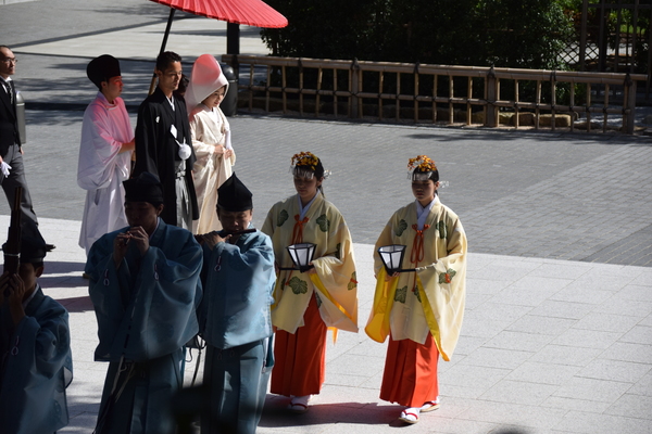 Für die nur etwa einen halben Kilometer lange Straße haben wir mehrere Stunden benötigt. Allerdings haben wir auch zwischendurch Crepe aus einem der unzähligen pinken, schrillen Crepe-Läden gegessen. Und auf der Suche nach einer Toilette haben wir direkt hinter der Straße einen ruhigen, netten Schrein gefunden. Hier gab es nicht nur einen Goshuin, sondern wir konnten zufällig auch eine japanischen Hochzeitszeremonie beobachten. So einen Wahnsinn auf so engem Raum, das gibt es wohl nur in Tokio.