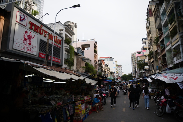 Ordentlich gestärkt ging es dann kreuz und quer auf dem Roller durch die Stadt. Die meisten Sehenswürdigkeiten befinden sich in District 1 und so kannte selbst ich mit meiner Orientierungsschwäche mich recht schnell halbwegs gut aus. Unser erstes Ziel war die Book Street. Für die Jüngeren unter uns: Wenn man ein eBook ausdruckt und zwischen zwei Pappscheiben tackert, das nennt man Buch. Sowas benutzen die alten Menschen noch teilweise. Die Book Street ist wenig überraschend voller Bücherläden. Die sehen ziemlich schick und gemütlich aus. Was aber wirklich erstaunlich ist: Die Straße ist insgesamt ziemlich kurz und liegt mitten in einer extrem lärmigen Gegend. Aber schon nach wenigen Metern in der Straße hört der Verkehrslärm auf, man hört noch ein bisschen Gehupe, bevor noch einige Schritte weiter auch das nicht mehr zu hören ist. Ob das die Magie der Bücher ist?
