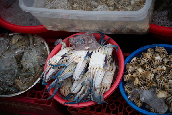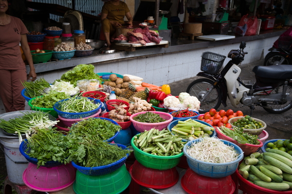 Nächste Haltestelle: Ein Straßenmarkt, und zwar in der Straße, in der wir gestern noch feiern, äh, ausspannen waren. Hätte ich selbstverständlich ohne Thores Hinweis nicht erkannt. Auf dem Markt gab es irgendwie alles, größtenteils aber zu für uns relativ wieder mal unvorstellbaren Hygienebedingungen. Besonders Fleisch, das ohne jede Kühlung bei diesem schwülen Wetter einfach an einem Haken baumelt, ist echt ein seltsamer Anblick. Aber scheint ja zu funktionieren. Sollte ich es nicht vergessen, knall ich noch ein paar mehr Eindrücke von dem Markt unten an den Artikel. Wenn ich es doch vergesse: Bitte in den Kommentaren beschweren!