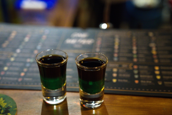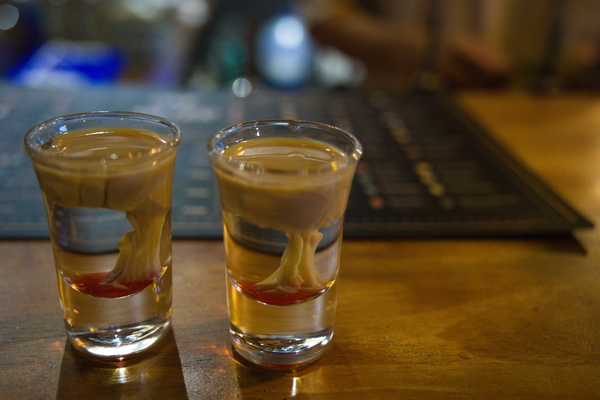 Nach dem Rummel war dann Zeit für etwas Ruhigeres. Eine Bar, die vielleicht in noch keinem Hipster-Reiseplan auftaucht: The Lab. Hier gibt es eine bunte Auswahl wilder Schnäpse für kleines Geld. Und natürlich kurz der Hinweis an die mitlesenden Arbeitskollegen: Ich habe ein paar echt gute Ideen für unser Team, das ja auch The Lab heißt! Auch hier gibt es unten ein paar Bilder, was wir uns so reingekippt haben. Ziemlich coole Sache und wir waren wirklich vorsichtig und haben es nicht übertrieben. Ich kann mir aber gut vorstellen, dass man hier richtig abstürzen kann. Und ein bisschen gelogen habe ich auch. Das war immer noch nicht die letzte Haltestelle. Neben dem Laden gibt es so einen Laden mit einem großen M. Da haben wir uns noch schnell einen Burger geholt und futternd ging es zu Fuß zurück zum Hotel. Zimmertür auf, Bett, Augen zu, Tag vorbei.