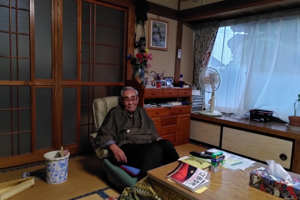 Angst kennt der Typ, den wir an unserer ersten Station treffen, nicht. Wir besuchen einen 94-jährigen ehemaligen Landwirt. Seine Familie lebt auf diesem Grund seit 400 Jahren, viele der Bäume auf dem Grundstück sind noch aus erster Generation. Er lebt vom Reisanbau und hat außerdem einen Maulbeerbaumwald, aus dem er das Futter für seine Seidenraupenfarm holt. Er soll uns aus erster Hand erzählen, wie das damals war. Und was seitdem für ihn geschehen ist. Es macht nicht den Eindruck, als wäre hier etwas aufgesetzt. Der alte Mann freut sich sichtlich über die Abwechslung und scheint sich genauso geehrt über unseren Besuch zu fühlen wie wir über seine Gastfreundschaft. Das Haus ist groß und klassisch japanisch. Er hat es vor 60 Jahren selbst gebaut und es soll noch weitere 100 Jahre halten. Das Haus ist vollständig aus Holz (aus dem eigenen Wald) und so gegen Erdbeben geschützt. Es riecht angenehm nach Zedern. Aber es ist ein bisschen kühl im Wohnzimmer. Der Alte macht uns Zeichen, wir mögen doch auf den Stühlen ohne Beine an seinem Tisch ohne Beine Platz nehmen. Und unsere Füße unter die Decke schieben (die Schuhe haben wir selbstverständlich schon im Eingangsbereich gelassen). Da merke ich es: Das ist ein Kotatsu! Die klassische, energiesparende Heizungsart Japans: Unter dem Tisch befindet sich ein (moderner Elektro-)Ofen. So werden die Füße angenehm mucklig warm. Aber die Decke hält die Wärme unter dem Tisch und es ist trotzdem noch angenehm frisch. Eine tolle Erfindung.