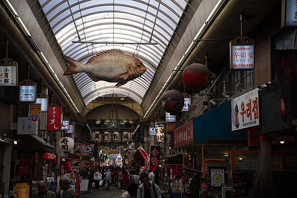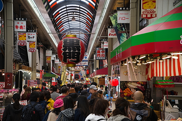 Da der Tag lang ist und das Beklettern von hohen Gebäuden ja bekanntlich rund um den Sonnenuntergang besonders schön ist, musste vorher noch etwas Aktitivät her. So langsam, aber sicher könnte ich mir mal ein paar Gedanken über Mitbringsel machen. Und was zu futtern wäre bestimmt auch nicht schlecht. Wo kann man da nur hingehen? Vielleicht auf einen Markt? Sowas hat Osaka als eines der Wirtschaftszentren Japans doch bestimmt. Tante Google sagt, der Kuromon Ichiba Market soll ganz schick sein.