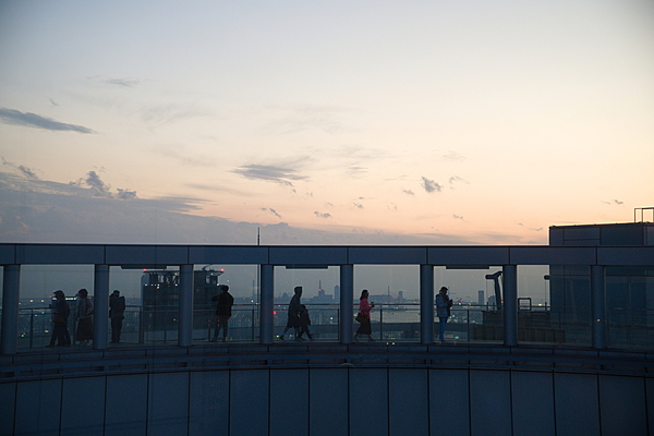 Wie üblich gibt es noch einiges mehr an Fotos am Ende des Artikels. Da es langsam dämmerte, war es nun an der Zeit, die Freiluftetage zu betreten. Obwohl man auf dem oberen Ring erst einmal auf die darunter liegende Etage schaut und natürlich alles an Sicherheitsvorkehrungen getroffen war, damit selbst den ungeschicktesten Tölpen nichts passieren konnte, sorgte die frische Luft dafür, dass sich meine Höhenangst in unangenehme Bereiche bewegte. Was, wenn jetzt ein spontaner Orkan entsteht, mich erfasst und ich vom Gebäude fliege? Das tut doch bestimmt weh. Naja, trotz leichter Schwierigkeiten konnte ich die Stimmung da oben aber ganz gut genießen und echt tolle Fotos schießen.