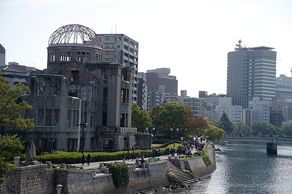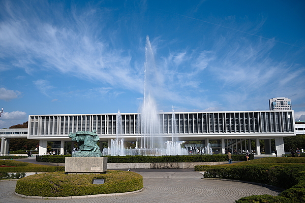 Geht man vom Kinder-Friedensdenkmal in Richtung Süden am Ufer durch den Friedenspark, gelangt man von hinten an das Friedensmuseum. Klar, könnte man sich ohne Probleme über diese penetrante Dichte von Friede, Freude und Eierkuchen aufregen oder lustig machen. Aber aufgrund der unaufdringlichen Art, wie man das Gedenken an dieses schlimme Kriegsverbrechen nutzt, um es ohne Verurteilungen positiv in einen Wunsch auf möglichst viel Frieden in der Zukunft nutzt, funktioniert sehr gut.