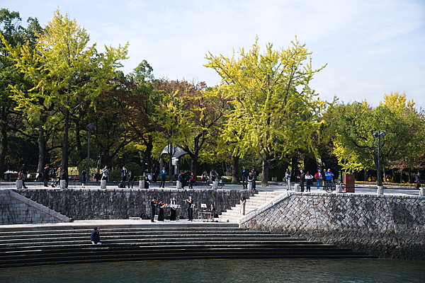 Bei angenehmen Temperaturen und nahezu perfektem Wetter ist der Fluss schnell erreicht. Und von hier sind es nur wenige Meter zum ikonischen Friedensdenkmal.