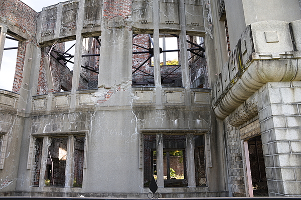 Die Bombe explodierte um 8:16 Uhr und zwei Sekunden. Das anvisierte Ziel (die Aioi-Brücke, zu sehen auf dem obigen Bild links neben dem Friedensdenkmal) wurde aufgrund von etwas Wind um wenige hundert Meter verfehlt, was aber aufgrund der Heftigkeit der Explosion ziemlich egal war. Man geht davon aus, dass 70.000 bis 80.000 Menschen (größtenteils japanische Zivilisten und Zwangsarbeiter) auf der Stelle tot waren, immerhin etwa ein Drittel aller Einwohner Hiroshimas. Der Blitz der Explosion brannte die Schattenumrisse von Menschen in Häuserwände. Viele Menschen in der direkten Nähe der Explosion verdampften auf der Stelle. Einigen verdampften nur die oberen Hautschichten und sie erlagen kurze Zeit später ihren Verletzungen (Wer Bock auf richtig schlechte Laune hat: Im Internet gibt es unzählige Bilder von Menschen mit herunterhängenden Hautfetzen). Da ein Großteil der Gebäude aus Holz waren (was mit einer der Gründe der Amerikaner für die Wahl Hiroshimas war), fegte ein Feursturm durch die Stadt und tötete unzählige weitere Menschen. Das ist auch der Grund, wieso das Friedensdenmal so berühmt wurde: Es war eines der wenigen Betongebäude in der Innenstadt. Und da die Bombe quasi senkrecht über ihm explodierte, schlug die Druckwelle nur die Dächer und Decken aus dem Gebäude und die Wände blieben stehen.