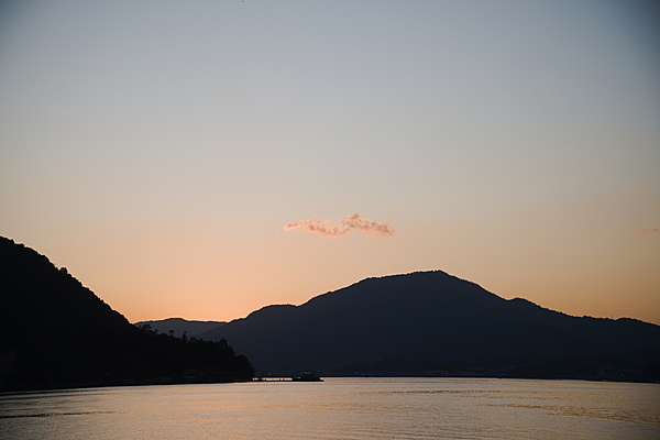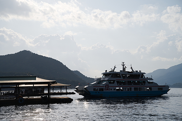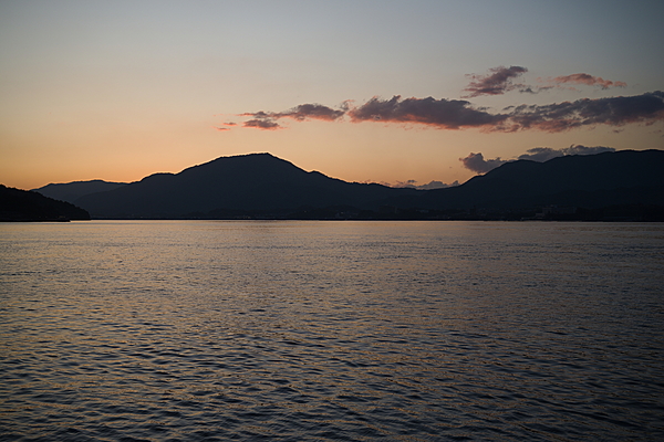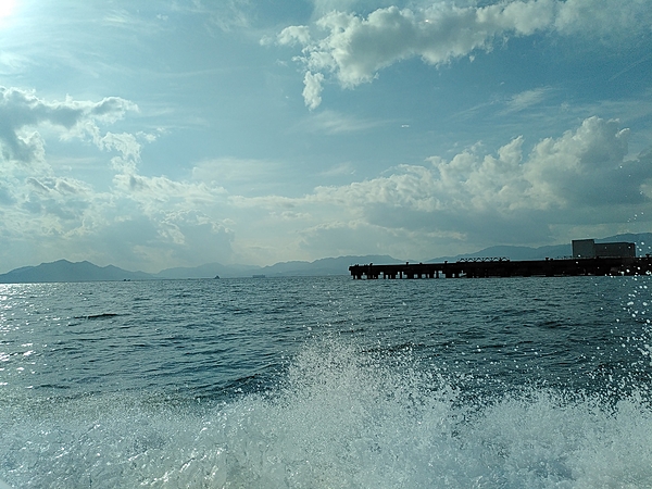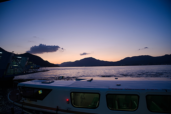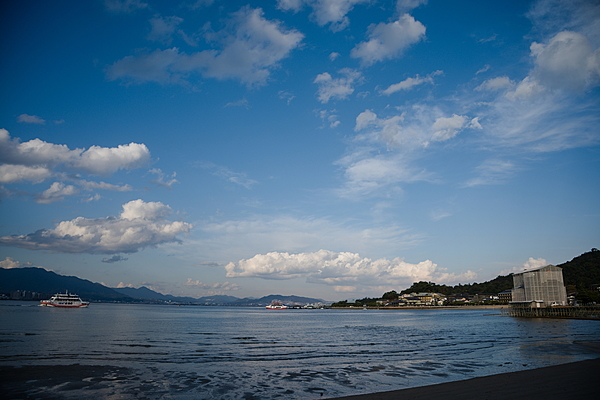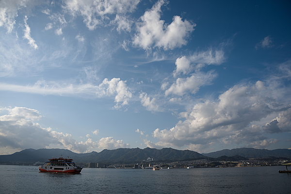 Da ich in Hiroshima leider nur einen Tag Zeit hatte und der Tag ja auch erst knapp halb vorbei war, war noch genug Zeit für ein weiteres Erlebnis. Nachdem mich die ganze Friedenspark-Geschichte doch ziemlich runter gezogen hat, durfte es ruhig mal etwas nicht ganz so tief gehendes sein. Zum Glück wusste ich, dass es direkt vor der Küste Hiroshimas eine berühmte, kleine Insel Miyajima gibt, die man per Boot in wenigen Minuten erreichen kann. Aber ob ich das zeitlich noch schaffe? Mal eine kurze Kuchenpause einlegen und dabei meinen virtuellen Reiseleiter von Google Maps nach einer Verbindung zur Insel fragen. In 20 Minuten fährt ein Boot nur etwa hundert Meter von meiner Pausenbank entfernt ab? Superstark! Also schnell ein Ticket für Hin- und Rückfahrt gekauft und ab auf das Schnellboot. Erst schipperte es noch ein wenig gemütlich durch die Flüsse Hiroshimas, bog dann ab in Richtung Hafenbecken und als wir erstmal bisschen auf dem Meer waren, wurde durchgestartet. Mit ordentlich Speed kachelten wir in Richtung Miyajima.