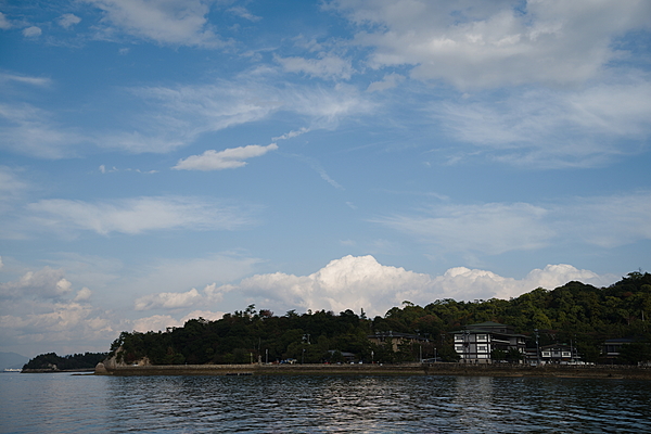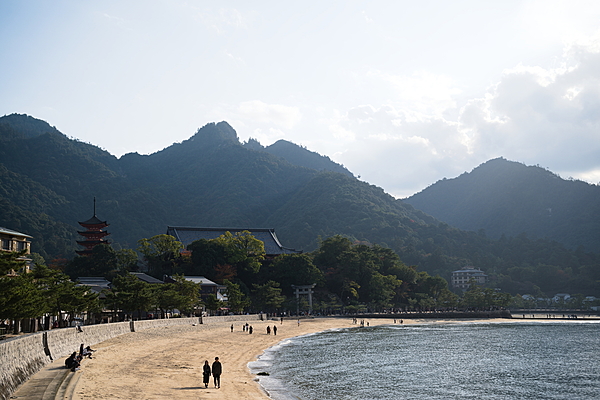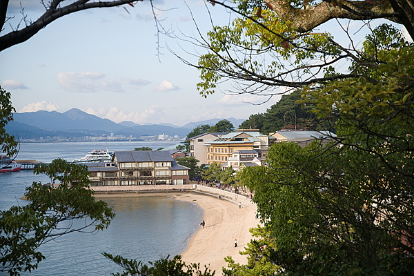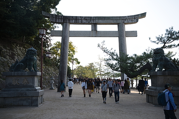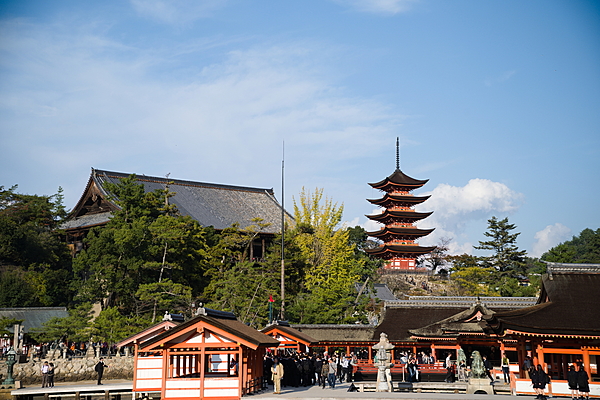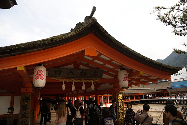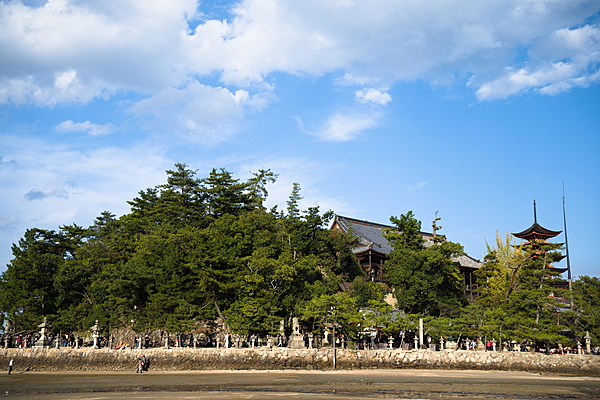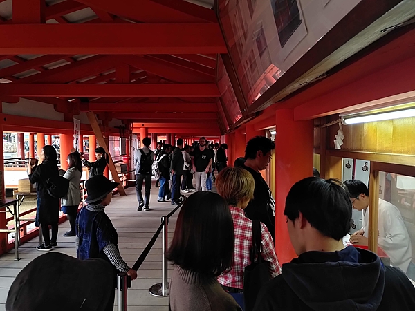 Der Schrein zeichnet sich insbesondere dadurch aus, dass er auf Pfählen (bei Flut) im Meer steht. Ansonsten ist er einigermaßen unspektakulär. So läuft man über die überdachten Stege und bekommt einige spektakulären Perspektiven auf Insel, Pagode und natürlich das Torii. Und am Ausgang gibt es noch einen Goshuin. Sicherlich nicht die tollste Attraktion der Welt, aber schon okay.