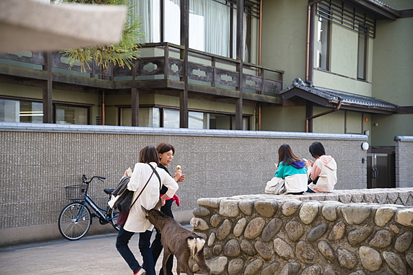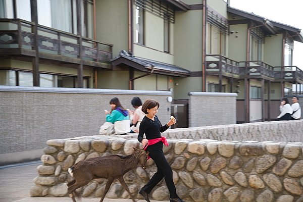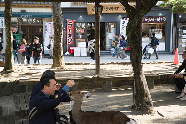 Auch wenn es an jeder Ecke Schilder gibt, dass man die Tiere nicht füttern oder streicheln soll, hält sich da kaum jemand dran (Und dass ich das Vieh auf dem Parkplatz gestreichelt habe, muss ich ja nicht verraten). Die Interaktion der Japaner mit den Tieren zu beobachten, ist sehr unterhaltsam. Wenn man nett ist zu einem Reh, sieht das so aus: