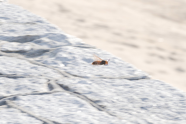 Wenige Meter weiter erreichte ich die Strandpromenade der Insel. Hier wäre ich dann allerdings um ein Haar Opfer eines höchst unangenehmen Monsters geworden: Einer japanischen Hornisse! Von denen hatte ich schon einiges gehört und wollte unbedingt mal welche sehen. Es war zwar nur eine, aber man muss schon sagen: Auch wenn man sich nicht vor Angst in die Hose macht, signalisieren sie aufgrund ihrer Größe und Fluggeräusche, dass man sich nicht unbedingt mit ihnen anlegen möchte. Und man kann sich gut vorstellen, dass sie in größeren Schwärmen tatsächlich mehr als nur unangenehm sein dürften.