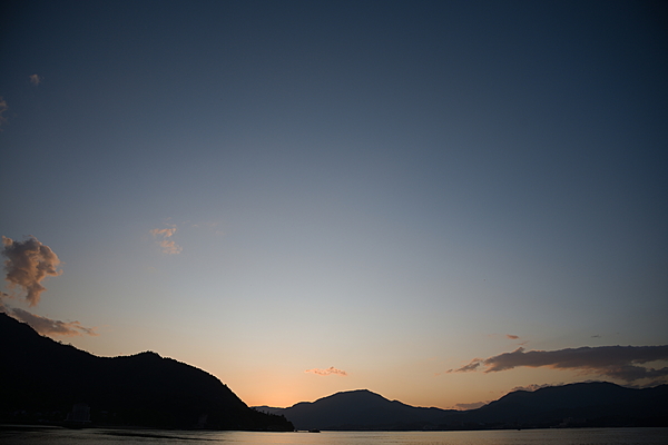 Also mal lieber aufgepasst, dass der Mund nicht zu weit offen steht und weiter die Promenande herunter. Auch wenn die Temperaturen in Japan mittlerweile weit von Badewetter entfernt waren, machte der Strand wirklich etwas her, insbesondere aufgrund einer malerischen Hintergrundskulisse. Da könnte man ja glatt mal ein Video (mit ein bisschen Herumgewackel...) von machen.