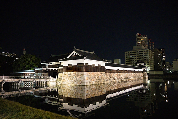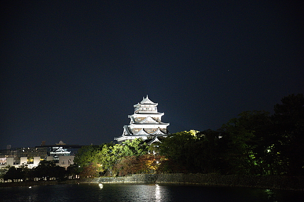 Als ich schon begonnen hatte, an Kapitulation zu denken, war sie dann da: Die ebenfalls toll beleuchtete Burg von Hiroshima. Wirklich schön.